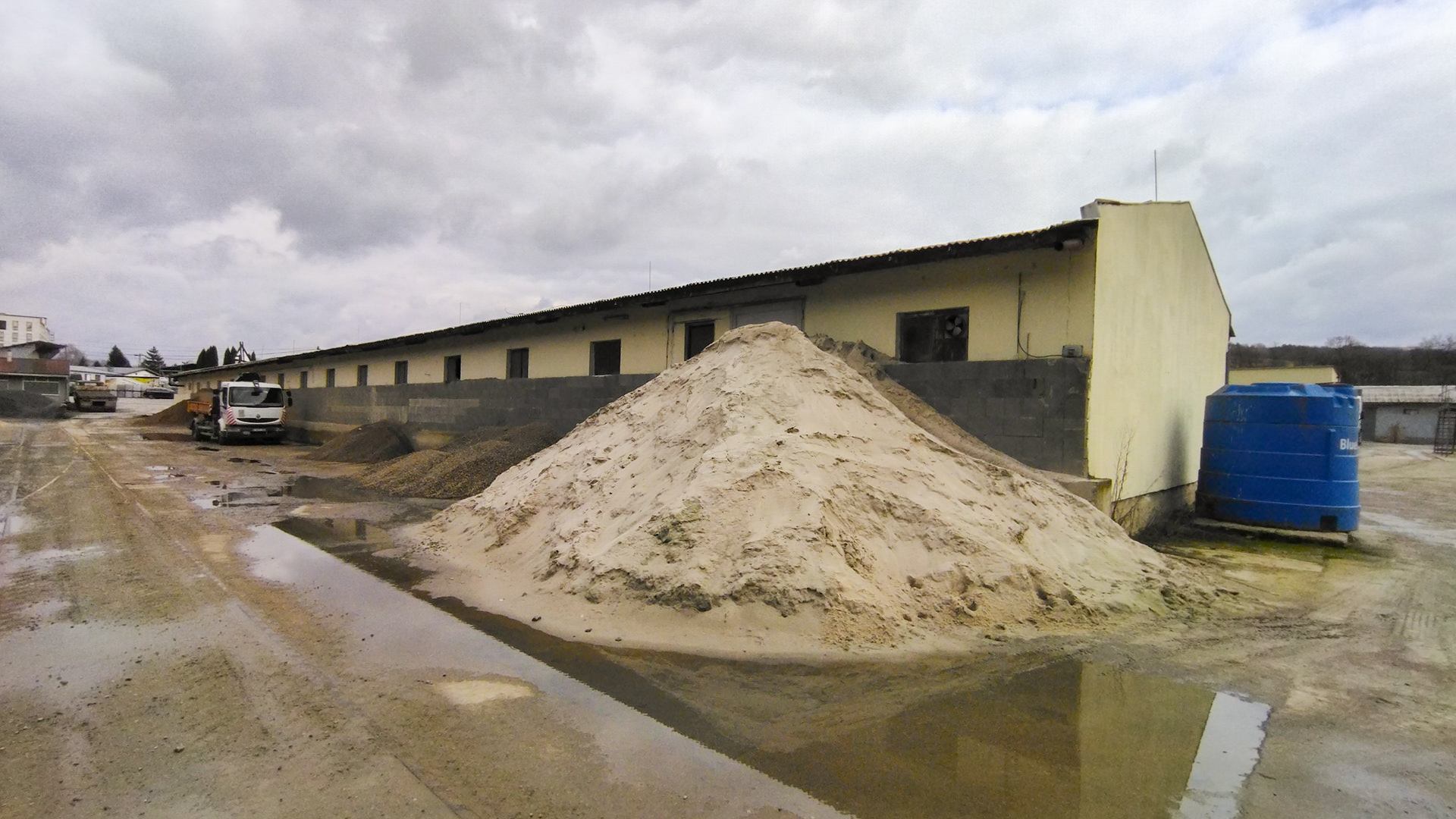 It is a standalone hangar (warehouse) located in the central part of the area. Currently, it is used for material storage.